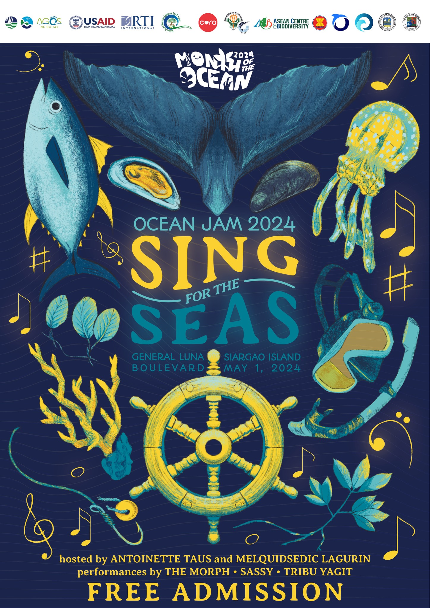 On the first of May, the Ocean Jam 2024: Sing for the Seas was organised by the DENR-Biodiversity Management Bureau and its partners. Themed 𝘋𝘦𝘷𝘦𝘭𝘰𝘱 𝘢 𝘴𝘶𝘴𝘵𝘢𝘪𝘯𝘢𝘣𝘭𝘦 𝘢𝘯𝘥 𝘦𝘲𝘶𝘪𝘵𝘢𝘣𝘭𝘦 𝘣𝘭𝘶𝘦 𝘦𝘤𝘰𝘯𝘰𝘮𝘺, the music fest featured live performances by local bands, messages of support from leaders, and exhibit booths showcasing the richness of ocean biodiversity and their protection.